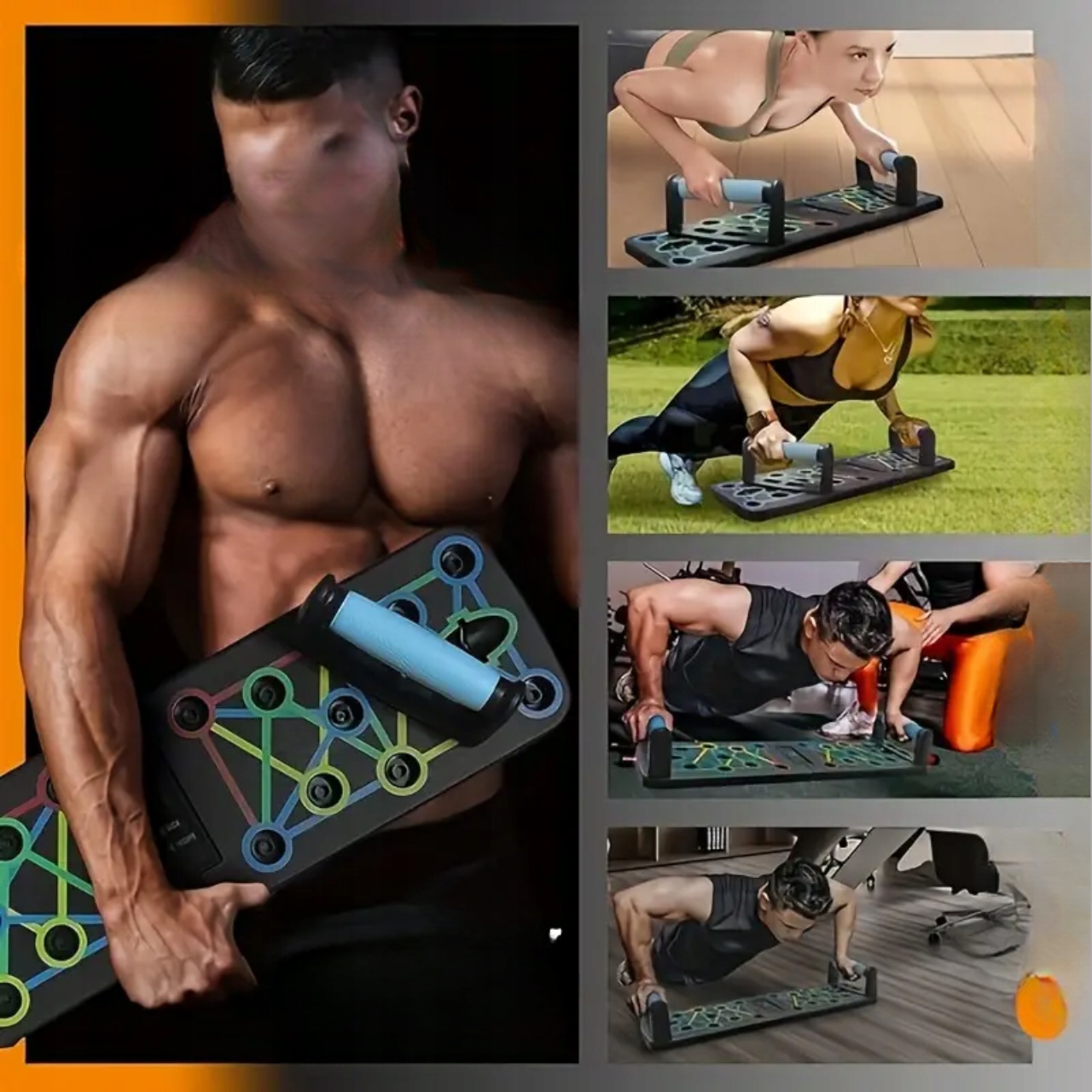 Začnite z vadbo resno! S tem kompletom za sklece boste dosegli več, ne da bi zapustili dom. Barvno kodirana tabla vam omogoča aktiviranjerazlične mišične skupine– prsi, hrbet, ramena in triceps! Hvala zaergonomski ročajiiz ABS plastike zmanjšate pritisk na zapestja, zato je vsaka vadba varnejša in učinkovitejša.