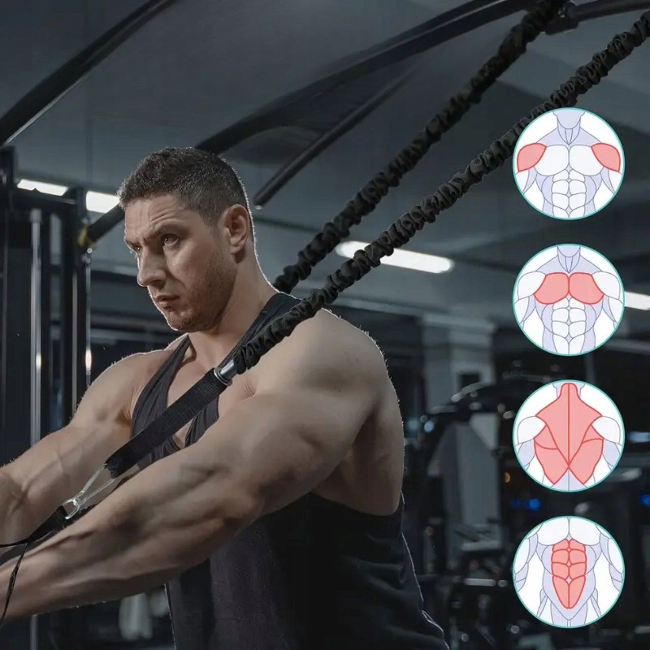 Edinstvena barvno kodirana tabla jevodnik za vadbo, vgrajen v opremo! Vsaka barva ustreza določeni mišični skupini – nič več ugibanja, kako vaditi! Popoln je tako za začetnike kot za napredne športnike.