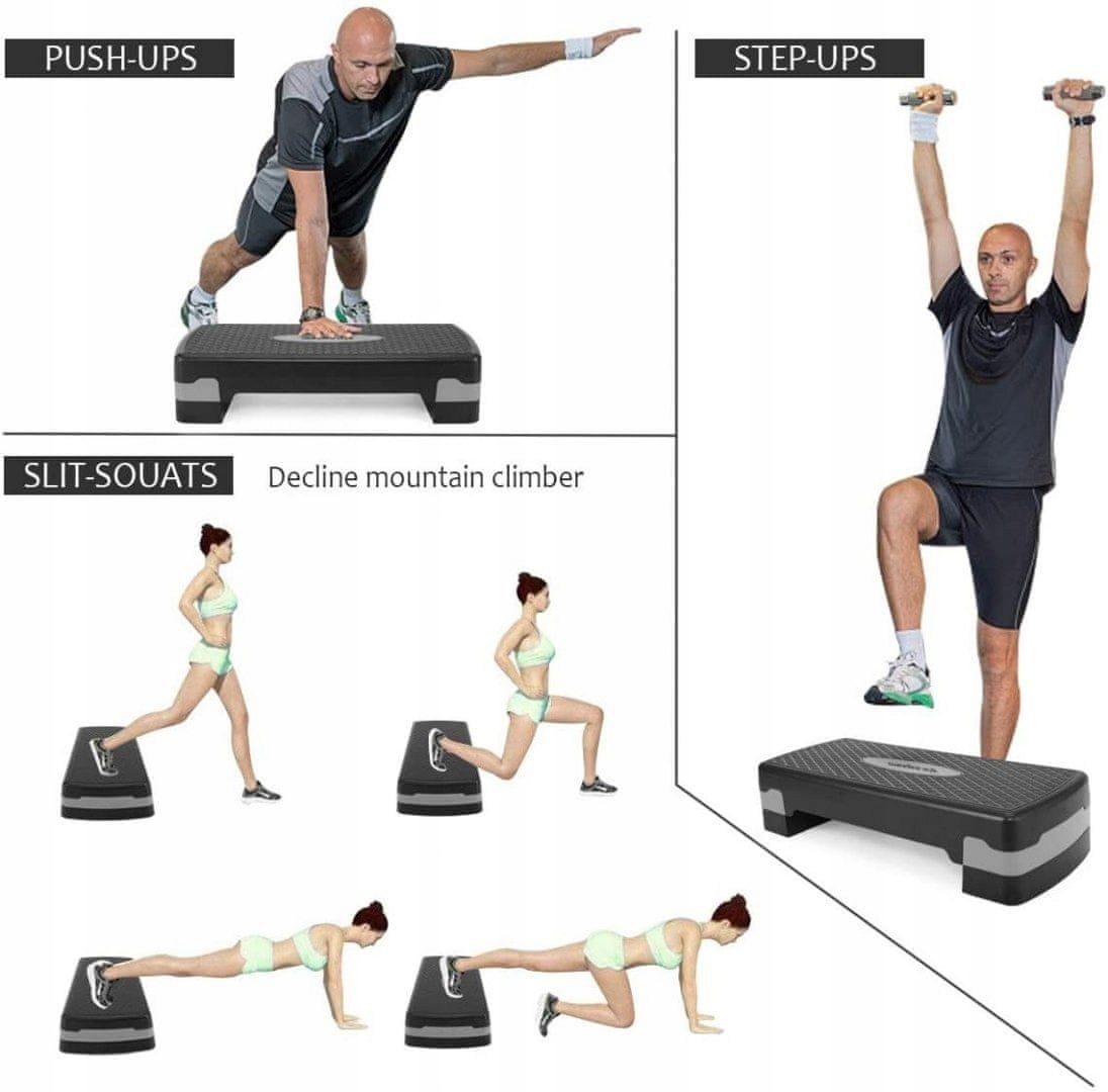 BE READY Fitnes in aerobika Step 2-Step ✓ DVOSTOPENJSKA NASTAVITEV ✓ GUMIJASTE NOŽICE, KI PREPREČUJEJO DRSENJE ✓ TRPEŽEN Ta BE READY stopnica vam omogoča izvajanje različnih vaj ne glede na starost ali raven znanja. Z dvostopenjsko nastavitvijo višine lahko izdelek prilagodite svojim znanjem, vaji, ki jo izvajate, in svoji višini. Gumijaste nogice preprečujejo zdrs stopnice med vadbo. Dvostopenjska nastavitev: Določite intenzivnost vadbe in prilagodite višino stopnice svojim pričakovanjem. Preprosta zasnova vam omogoča hitro nastavitev izdelka, kar vam omogoča, da prilagodite višino, ko se vaše znanje izboljšuje. Možnosti višine: 10 cm 15 cm Različne vaje: Odločite se, katere dele telesa želite okrepiti. Z vajami s stepi lahko: oblikujete zadnjico, stegna in meča, izboljšate svojo telesno pripravljenost, kurite odvečno maščobo ter okrepite roke in ramena. Specifikacije: Nedrseča površina Nedrseče nogice za stabilnost 2-stopenjska nastavitev višine Trpežen material Dimenzije: dolžina 68 cm x širina 28 cm x višina 10/15 cm Barva: Črna