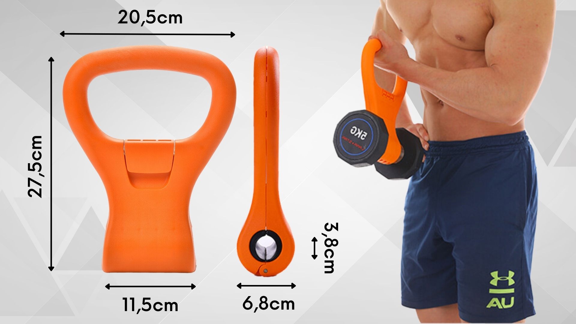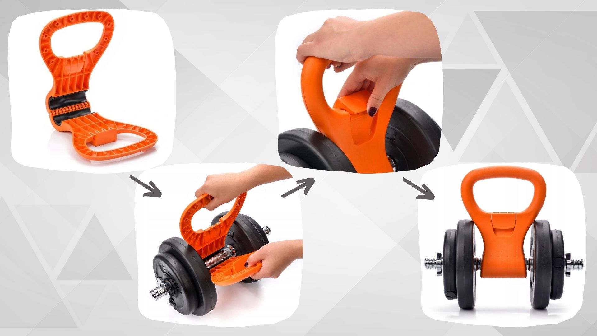 Prenosni adapter za uteži , ki navadne uteži spremeni v kettlebell . S tem adapterjem boste opravili celotno vadbo v različnih utežnih razredih . Popoln za domačo telovadnico in fitnes navdušence na poti. Primeren bo za večino najbolj priljubljenih uteži .