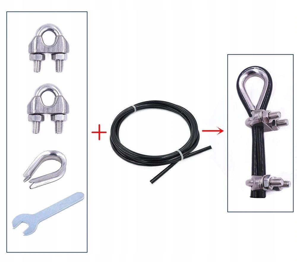 Vrv je na enem koncu zaključena z varnostno kroglo, drugi konec pa je opremljen z jeklenim ročajem za samodejno nastavitev dolžine vrvi, pritrjenim z dvema vijačnima sponkama.