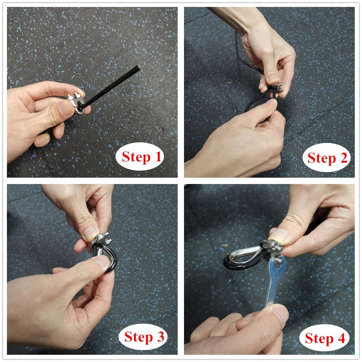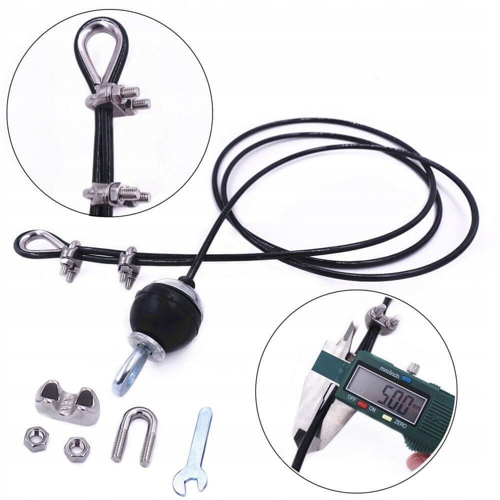 Vrv je na enem koncu zaključena z varnostno kroglo, drugi konec pa je opremljen z jeklenim ročajem za samodejno nastavitev dolžine vrvi, pritrjenim z dvema vijačnima sponkama.
