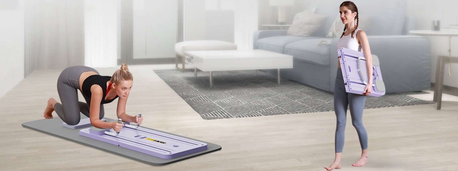 Odkrijte našo novo pilates desko, ki združuje funkcionalnost reformerja s kompaktno zasnovo, popolno za vadbo doma!