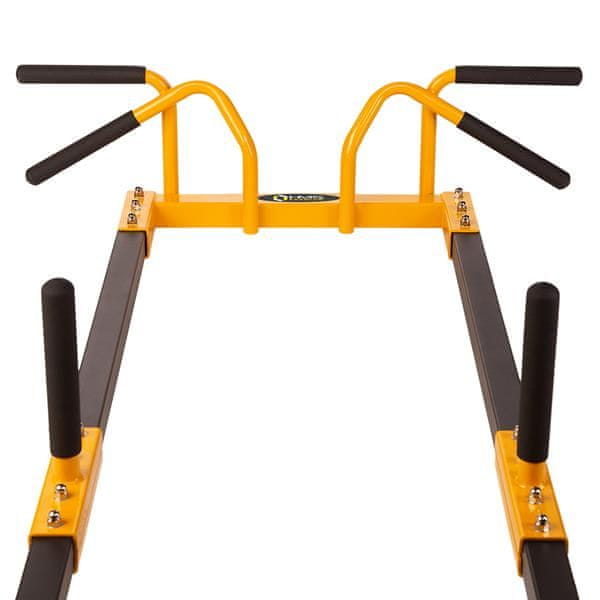 PWL8323 HMS PREMIUM je večnamensko ograjo. Zasnovan je za izvajanje predvsem dveh vaj: potegov na palici in sklecev na bradlji, t.i. dipsov. Gre za dve vaji, ki močno razvijata dve skupini antagonističnih mišic, in sicer najširšo hrbtno mišico z bicepsom in prsno mišico s tricepsom. Palico in bradlje lahko seveda uporabljamo tudi za vadbo trebušnih mišic. Posledično vam PWL8323 daje priložnost za razvoj skoraj vseh zgornjih mišičnih skupin. Največja dovoljena obremenitev oprijemala je 300 kg, kar vam omogoča izvajanje vaj ne samo z lastno telesno težo, ampak tudi s precej veliko obremenitvijo. Poleg tega ima palica dve možnosti oprijema. Spreminjanje položaja oprijema vam omogoča, da v večji meri razvijete mišico z različnimi koti njenega delovanja. Zelo stabilna konstrukcija omogoča dinamično vadbo brez strahu, da bi se oprema prevrnila. Uporaba najkakovostnejših materialov zagotavlja izjemno vzdržljivost izdelka. Zaradi tega je oprema tudi varna in udobna za uporabo. Na ročajih je posebna pena, ki preprečuje drsenje roke in ne povzroča nelagodja pri prijemu. PWL8323 HMS PREMIUM je obvezen del seznama izdelkov, ki bi morali biti v vaši domači telovadnici. Specifikacija: Material: jeklo, PU pena Mere: Dolžina: 103 cm Širina: 102,5 cm Višina: 206,5 cm Razmik med ročaji: Zgornji ravni ročaj: 82 cm (merjeno od sredine ročaja) Zgornji poševni ročaj: 79 cm (merjeno od sredine ročaja) Spodnji ročaj: 64 cm Dolžina ročaja: Zgornji ročaji: 23,5 cm Spodnji ročaji: 24,5 cm Premer ročaja: Zgornji ročaji: 35 mm Spodnji ročaji: 41 mm Prerez okvirja: 50×50 mm Debelina jekla: 2,75 mm Največja obremenitev: 300 kg Teža izdelka: 42 kg Opombe: Ni namenjeno komercialni uporabi 24-mesečna garancija
