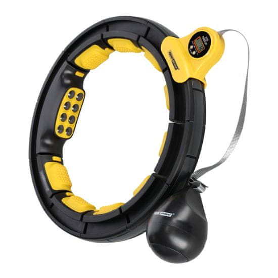 SH30-BY HULA HOP ČRNO/RUMEN Z MAGNETI IN UTEŽJO + ŠTEVEC. Masaža, toniranje in udobje v enem. Izbokline, ki absorbirajo vibracije, in gravitacijska žoga zagotavljajo učinkovito masažo celotnega pasu, hkrati pa tonizirajo kožo. Zahvaljujoč nastavljivemu obsegu lahko varno in udobno izvajate tudi intenzivne vaje. Vgrajeni magneti podpirajo vaš metabolizem, števec pa vam omogoča natančno sledenje napredku pri vadbi. Hula hoop SH30-BY je odlična izbira za vas in vašo družino. SH30-BY je odlična rešitev za vadbo doma. Zaradi svoje dovršene zasnove je primeren tako za napredne kot za začetnike. Ne glede na to, ali redno vadite ali šele začenjate s fitnes treningom, bo ta hula hoop izpolnil vaša pričakovanja. 360° trening in magnetna masaža. Posebne vzmeti, integrirane v glave okoli hula hopa, absorbirajo obremenitev in se prilagodijo telesu. To ne le intenzivira vašo vadbo, ampak zagotavlja tudi nežno masažo. Zasnova preprečuje udarce in preprečuje, da bi naprava med vadbo padla. Negativno polarizirani magneti dodatno podpirajo kurjenje maščob in pospešujejo vaš metabolizem. Kakovost in funkcionalnost SH30-BY temeljita na najkakovostnejših materialih, kar zagotavlja vzdržljivost in udobje. Integriran števec omogoča spremljanje porabe kalorij, hitrosti vrtenja in trajanja vadbe. Gravitacijska krogla, napolnjena s peskom, zagotavlja varnost tako uporabnika kot vadbenega prostora. Prijaznost do uporabnika in kompaktna zasnova: SH30-BY je bil posebej zasnovan za enostavno uporabo. Nastavljiv obseg in enostavno zapiralna zaponka olajšata pripravo na vadbo. Krožni gibi bokov v kombinaciji s centrifugalno silo aktivirajo trebušne in jedrne mišice. Zahvaljujoč kompaktni velikosti lahko hula hoop vzamete s seboj kamor koli. Sestavljanje: Odprite zanko z magnetnimi sponkami. Posamezne dele povežite tako, da en del potisnete v drugega in vstavite izbokline v ustrezne luknje. Če želite zmanjšati število elementov, z eno roko primite želeni element in pritisnite, da sprostite izbokline iz lukenj. Nato vstavite tirnico gravitacijske krogle v zanko, zaprite magnetne sponke in prilagodite dolžino traku. Hula hoop je sestavljen iz 13 elementov, katerih obseg je mogoče nastaviti od 60 do 96 cm (9–13 elementov). Z nastavitvijo dolžine traku za gravitacijske kroglice lahko nadzorujete intenzivnost vadbe – daljši kot je trak, bolj zahtevna je vaja. Prednosti vadbe SH30-BY: Vaje s hula hoopom krepijo trebušne, hrbtne in zadnjične mišice, kar pomaga zožiti pas in zmanjšati telesno maščobo. Že 30 minut redne vadbe je dovolj, da vidite rezultate! Specifikacije: Material: PP+ABS+PVC Barva: rumeno-črna Nastavitev obsega: 9–13 elementov Notranji premer: 20–31 cm Zunanji premer: 30–40 cm Pas: 60–96 cm Obremenitev: 360–400 g Dolžina traku z obremenitvijo: 15–30 cm Osem magnetov Števec Funkcije štetja: čas, kalorije, število ponovitev Blaženje udarcev: DA