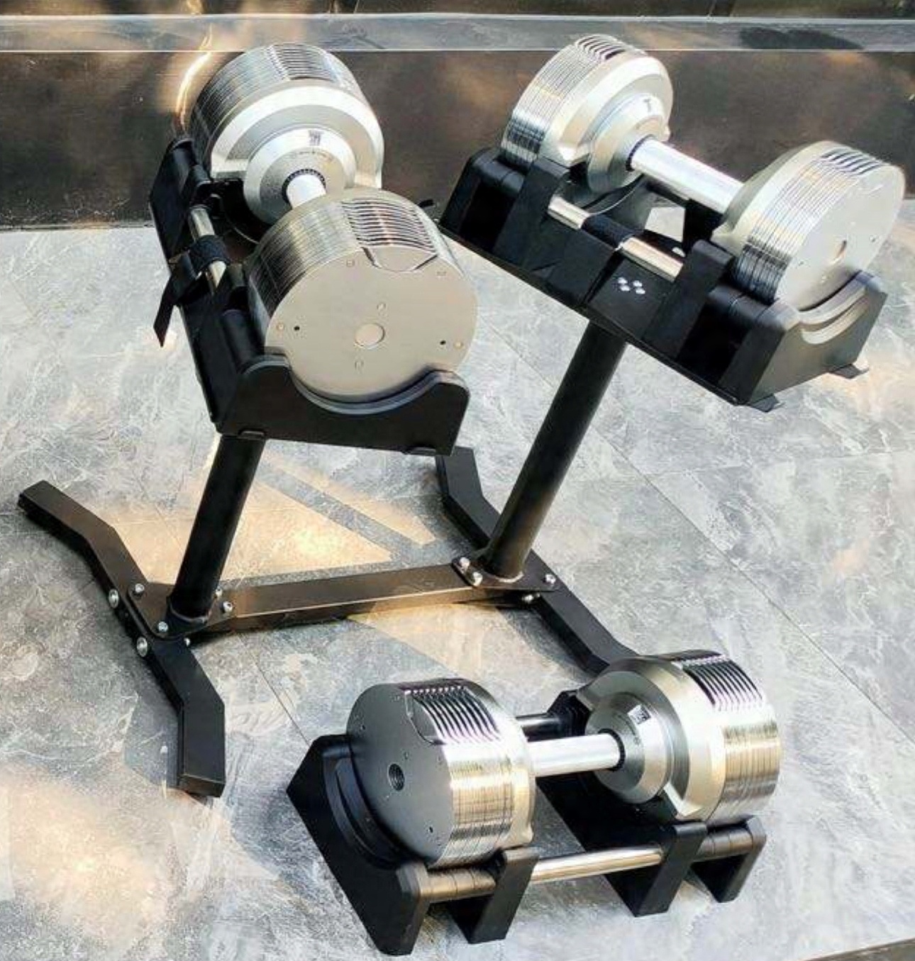 Dvignjena zasnova stojal omogoča priročno postavitev in dvigovanje uteži, kar pospeši spreminjanje teže in izboljša vašo vadbo.