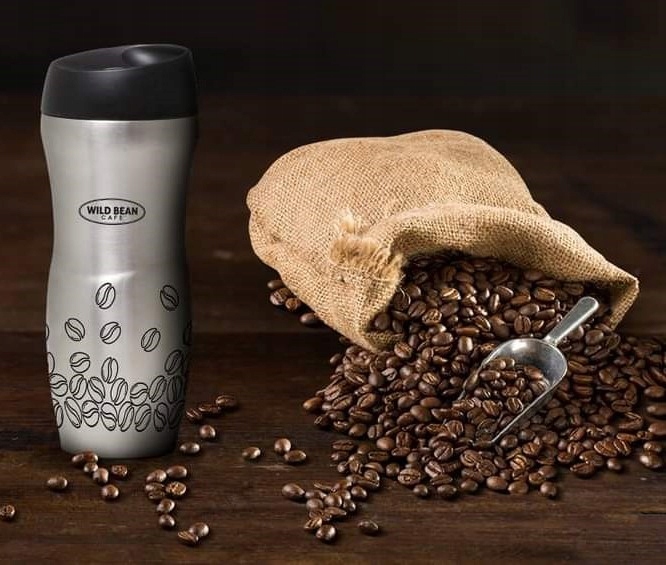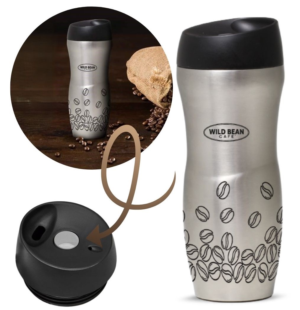Dvostenska termo skodelica Wild Bean Cafe s prostornino 400 ml. Izdelana je iz najkakovostnejšega nerjavečega jekla. Ima zelo praktičen avtomatski Klik-Klak pokrovček za odpiranje in zapiranje ter oblikovano obliko za udoben oprijem. Ohranja tako vroče kot hladne temperature. do 6 ur.