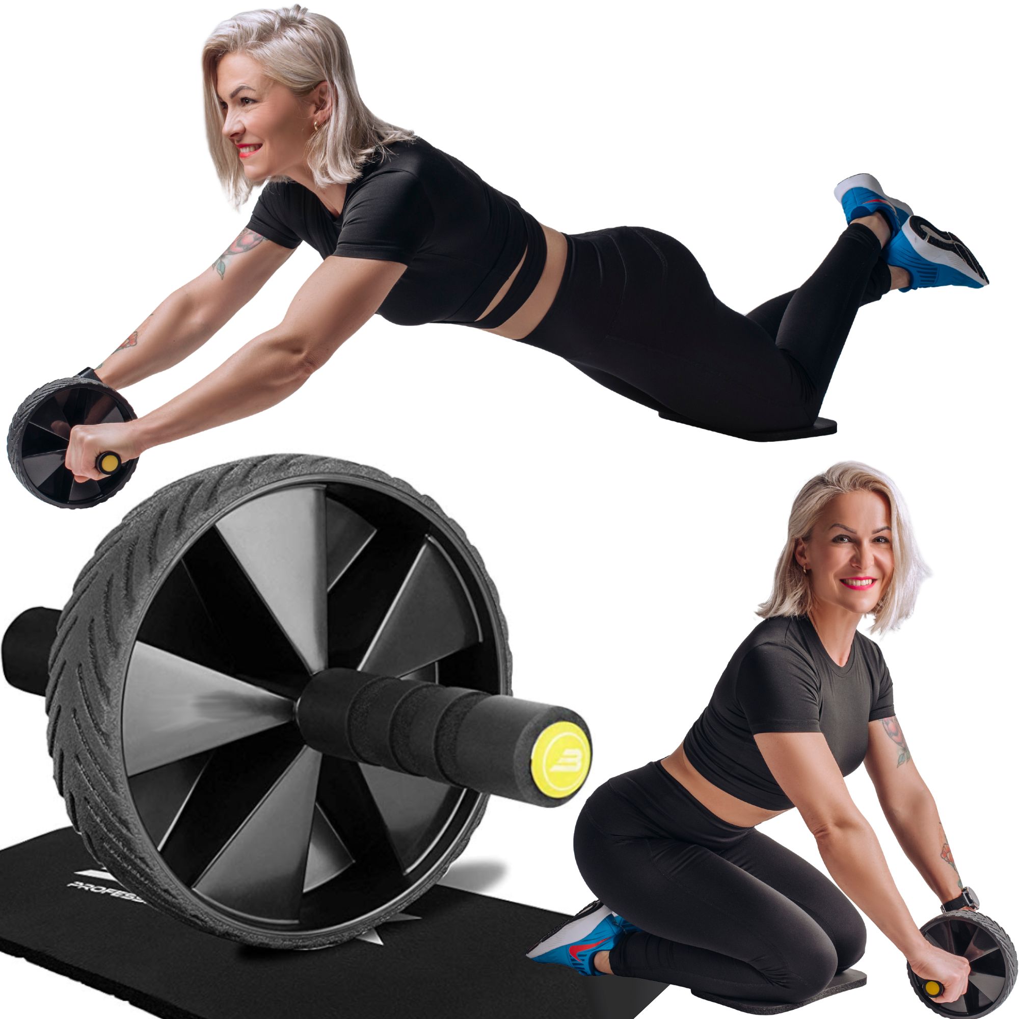 • Trpežno kolo je prekrito z protizdrsnim materialom , oprijem na katero koli površino je najvišje kakovosti, ali boste vajo izvajali pravilno, pa je odvisno samo od vas, ne pa od tega, ali je valjčku določena površina „všeč“.