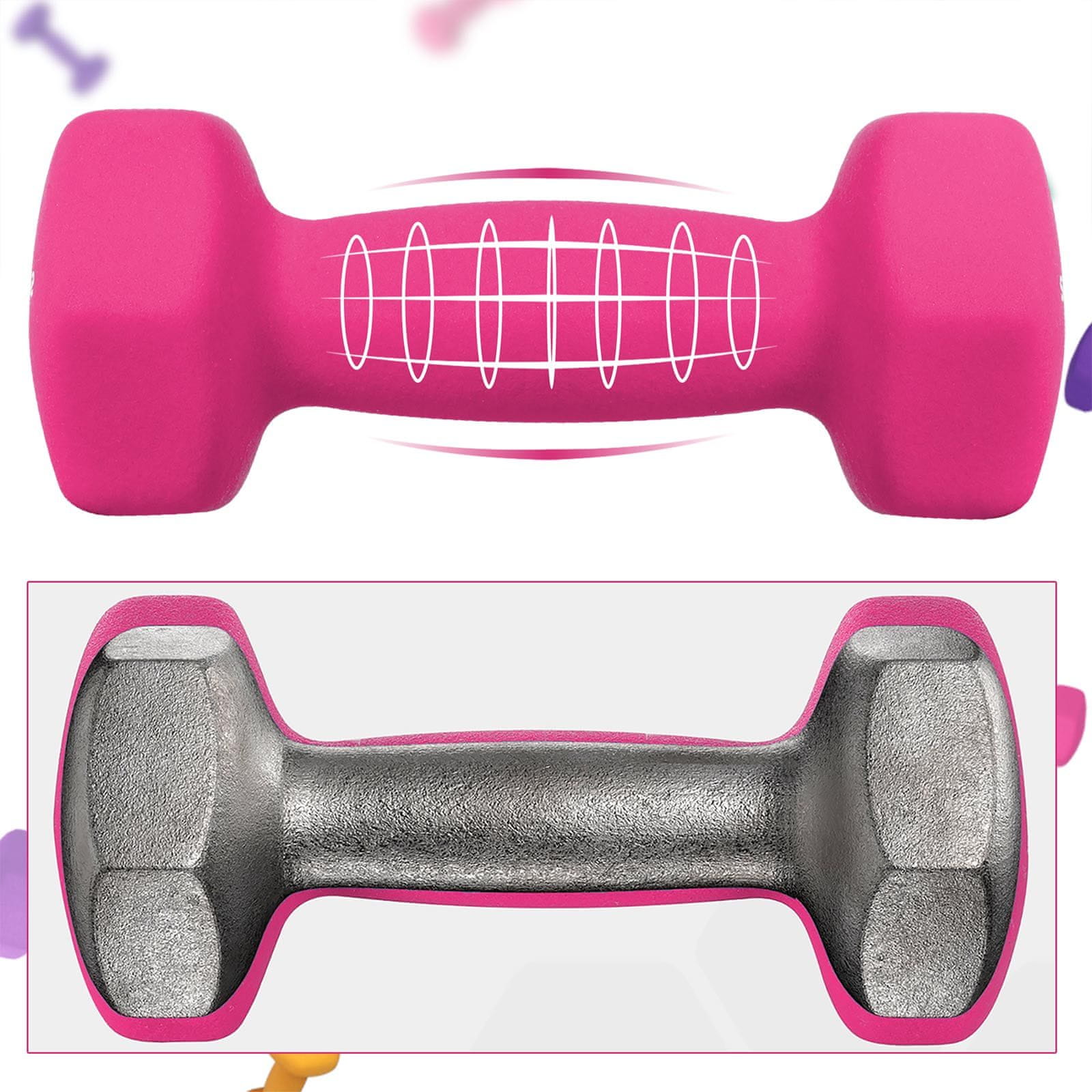 Ta komplet šestkotnih ročk je zasnovan za učinkovite vadbe doma kar omogoča enostavno vključitev vadbe za moč v vašo dnevno rutino. Komplet vključuje kompakten stojalo za shranjevanje ki je priročen za shranjevanje in primeren za različne vaje. Ergonomski ročaji in stabilna šestkotna oblika zagotavljajo varen in udoben oprijem med uporabo.