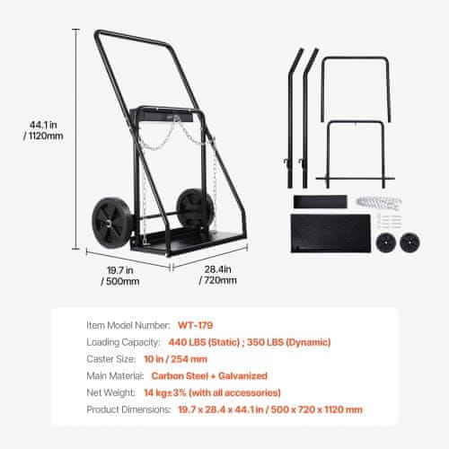 VEVOR Voja silindri käru 500x720x1120 mm Must