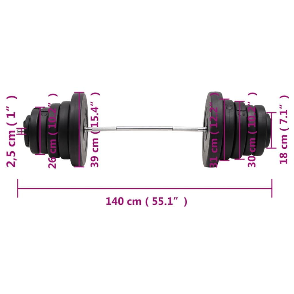 • Dimenzije palice za uteži: 25 mm x 140 cm (Premer x D)