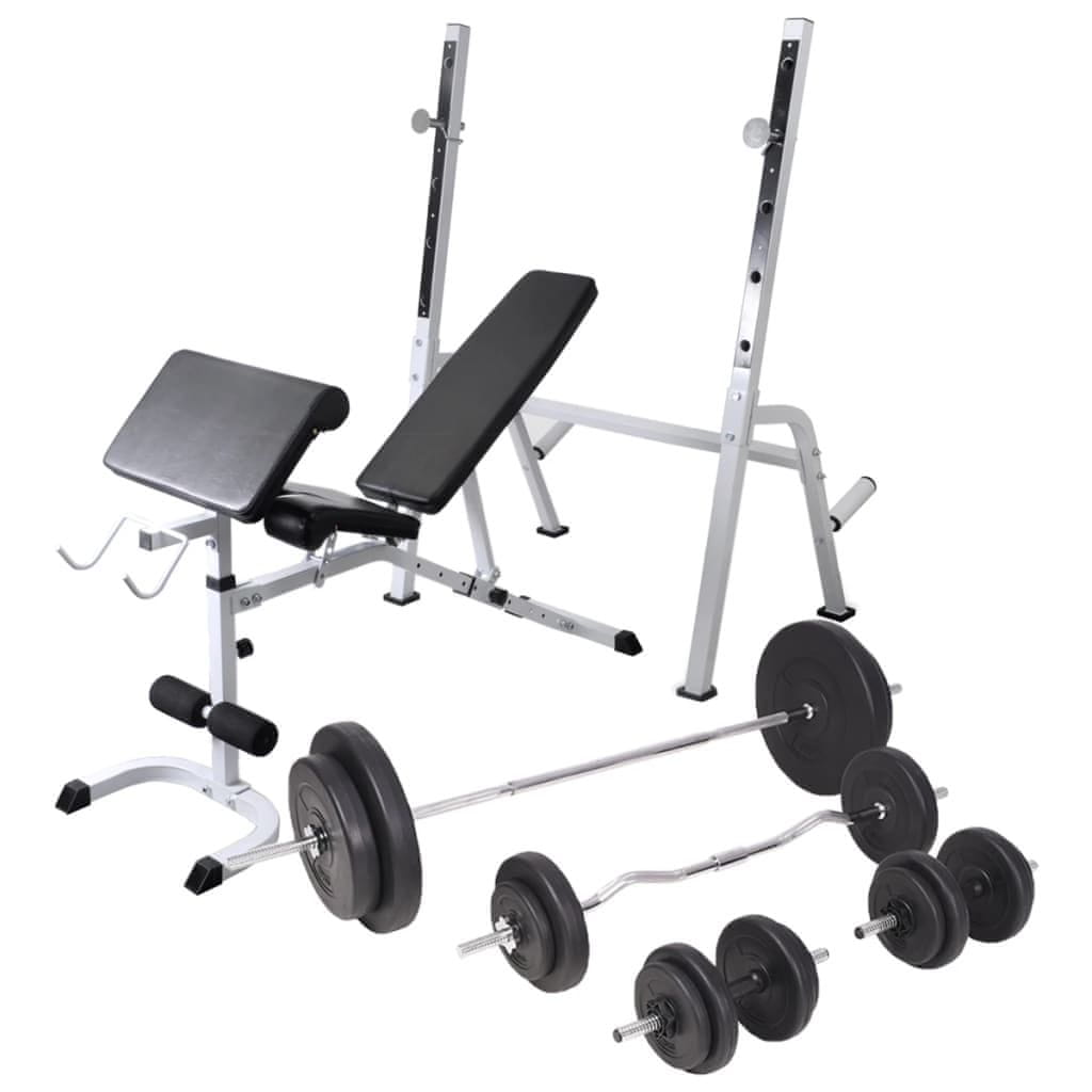 Vidaxl Vadbena klop s kompletom uteži in stojalom 90 kg