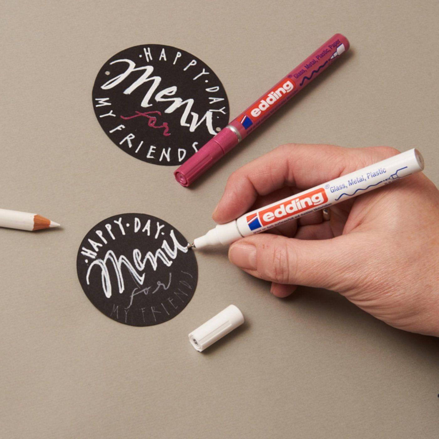 Permanentni marker za lak za močno neprozorno označevanje skoraj vseh materialov (steklo, plastika, les, kovina) Pigmentno črnilo zagotavlja neprozorne učinke na način laka Posebej primerno za temne in prozorne materiale … Celoten opis