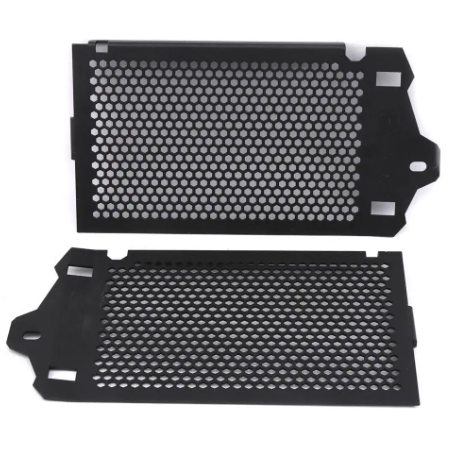 Zaščita hladilnika motornega kolesa ščiti hladilnik pred mehanskimi poškodbami, kot so udarci kamenja, gramoza in drugih majhnih cestnih odpadkov. Preprečuje, da bi žuželke in listje zamašile hladilnik, kar lahko zmanjša njegovo učinkovitost hlajenja. Prav tako ščiti pred neposrednim stikom z večjimi odpadki, ki lahko poškodujejo občutljiva rebra hladilnika. To podaljša življenjsko dobo hladilnika in zmanjša tveganje za okvaro hladilnega sistema. Poleg tega lahko zaščita izboljša estetiko vašega motornega kolesa, saj mu daje bolj agresiven in eleganten videz.