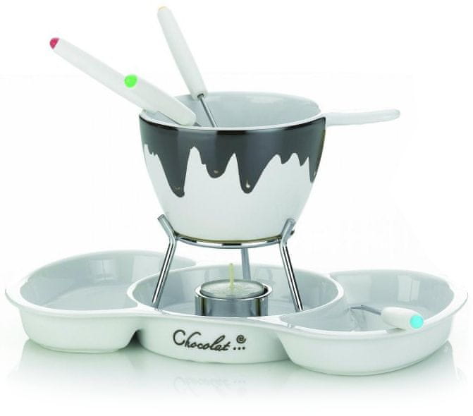 Čokoladni fondi CHOCO DARK, komplet 6 kosov, keramika. 1 x skleda, premer 11,5 cm, višina 7,5 cm (keramika) – 1 x stojalo z držalom za čajno lučko, višina 8 cm – 4 x vilice, dolžina …