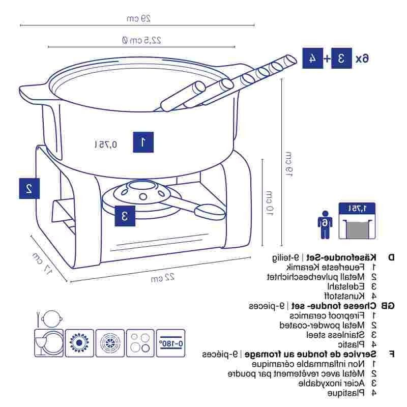 Rimski komplet za fondi s sirom bo poskrbel za prijeten večer, ko se bo čas za trenutek ustavil. Z 9-delnim kompletom za sirov fondi je poskrbljeno za vse, kar potrebujete za miren večer z najboljšo hrano. S svojo brezčasno zasnovo in kakovostno izdelavo je rimski set za fondi za sir idealen tako za praznična družinska srečanja kot za prijeten večer s prijatelji. Mat črn komplet Roman cheese fondue je dolg 29 cm, širok 22,5 cm, visok 19 cm in ima premer 22,5 cm. Posoda za sirov fondi ima prostornino 1,75 l. Sestavljen je iz.