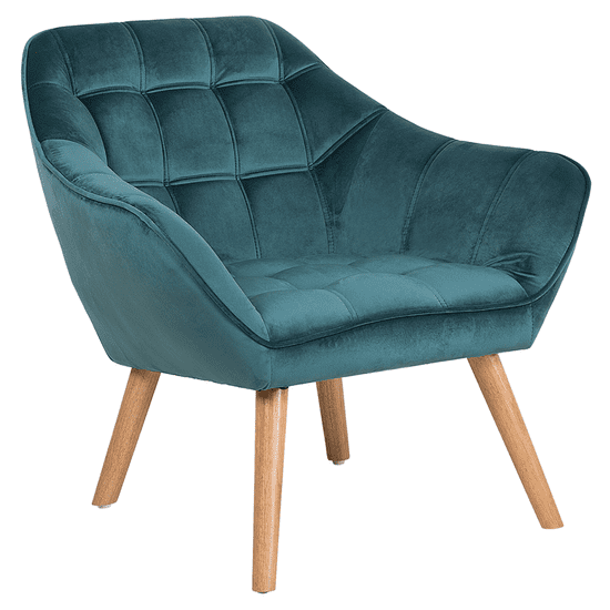 Beliani Oblazinjen žametni fotelj v zeleno-modri barvi KARIS