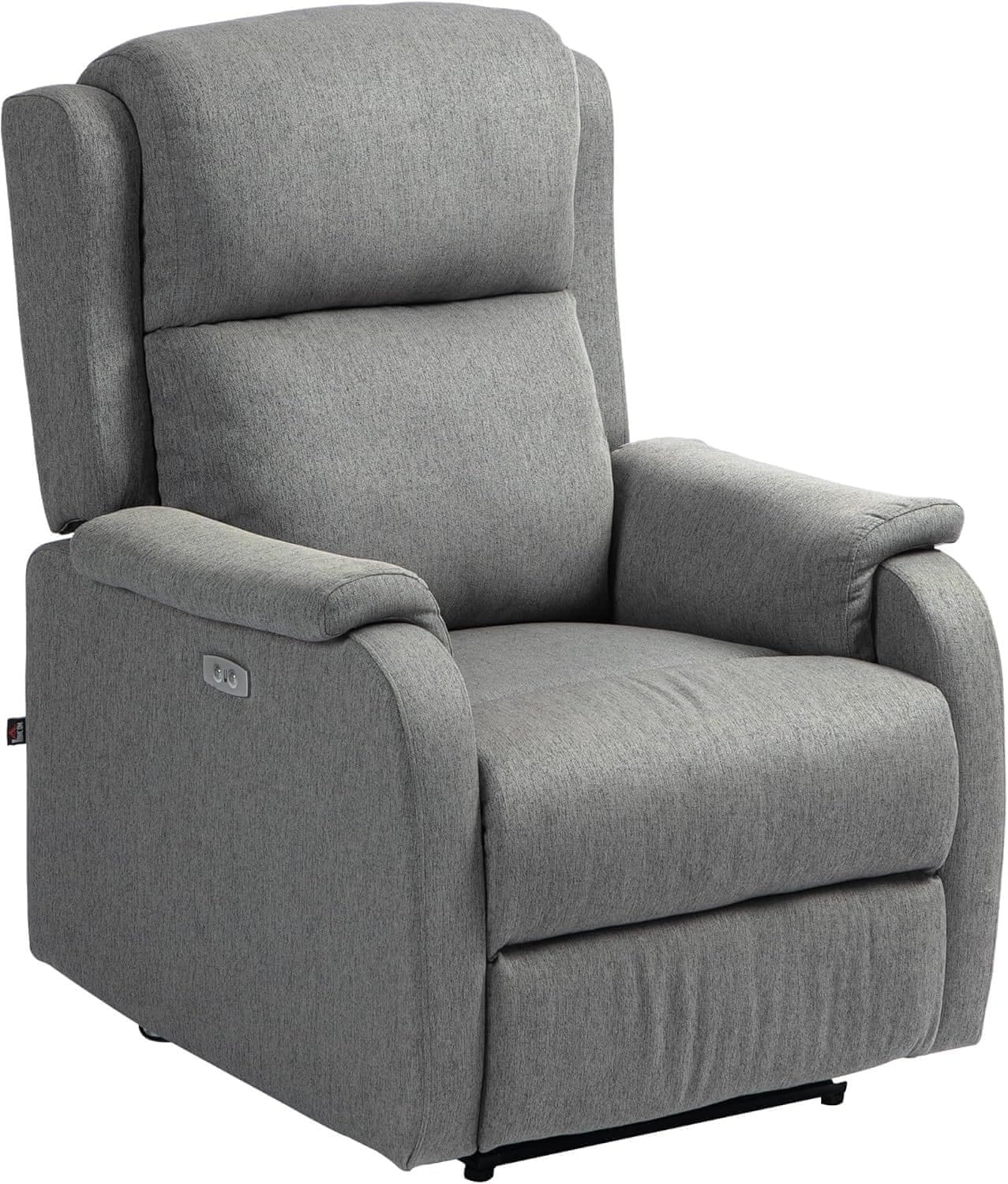 HOMCOM Fotel Rozkładany z Podnóżkiem Gniazdem USB 77×91×106 cm Szary