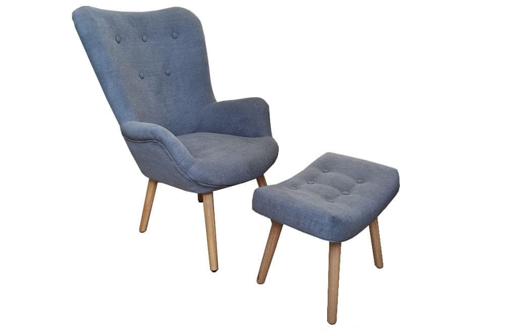 Modern in praktičen fotelj, ki bo popestril vaš prostor. Oblazinjen je s kvalitetno tkanino v prijetno sivi barvi, katera se z lahkoto kombinira z ostalim pohištvom. Nogice fotelja in tabureja so lesene. Odlična izbira za popestritev prostora in seveda zelo udoben za sedenje.