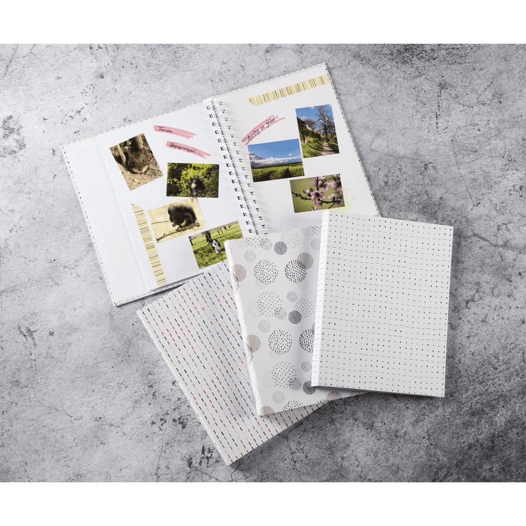 • špiralna vezava je natančno prilagojena velikosti albuma