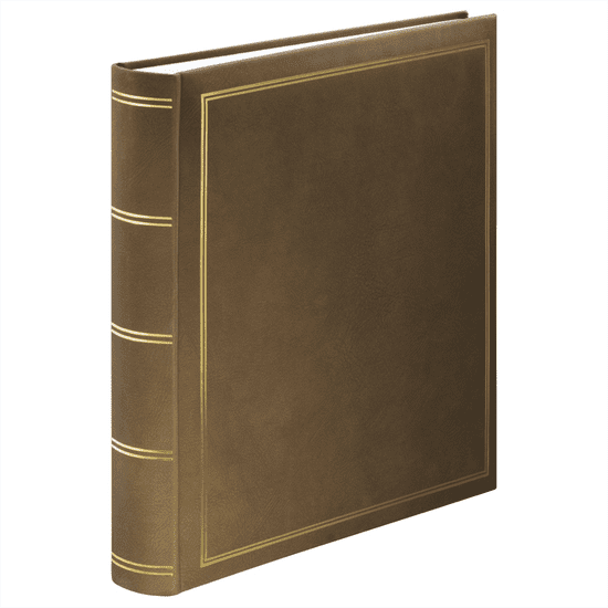 • za lepljenje fotografij – za 480 fotografij formata 10×15 cm – plošče iz PU materiala – umetno usnje – zlat okvir na sprednji strani plošč in zlate črte na hrbtu – beli notranji listi, pergamentni papir …