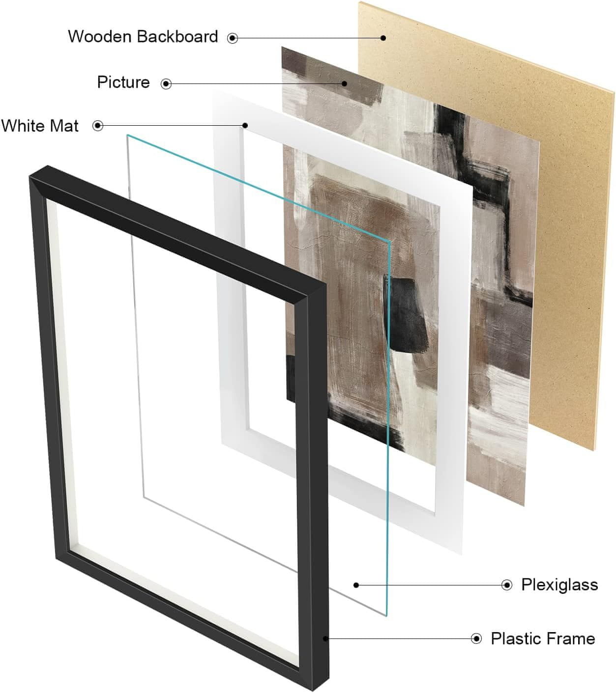 Okvirji so izdelani iz trpežnega, lahkega črnega materiala in imajo pleksi steklo, odporno proti lomljenju, za vzdržljivost in varnost. Komplet vključuje dodaten komplet grafik rastlin/praproti, tako da lahko preprosto zamenjate slike in prilagodite dekor svojim željam.