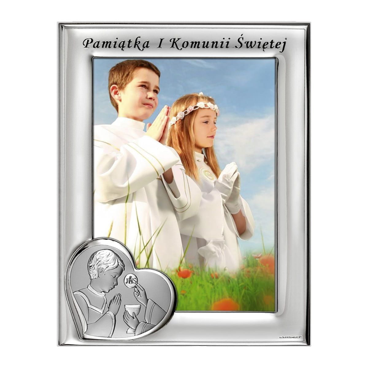 To je ekskluzivni spominek v obliki okvirja za fotografije. Ustvarilo ga je italijansko podjetje, vodilni v proizvodnji srebrnih spominkov. Okvir prikazujedeček, ki prejema prvo sveto obhajilo v obliki srca. Na vrhu okvirja je napis »Spominek prvega svetega obhajila«. Okvir lahko sprejme merjenje fotografije9 × 13 cm, medtem ko celoten okvir meri13 × 17 cm. Ta srebrni okvir za fotografije je popoln kot edinstveno darilo ali spominek za posebno priložnost, kot je prvo sveto obhajilo.