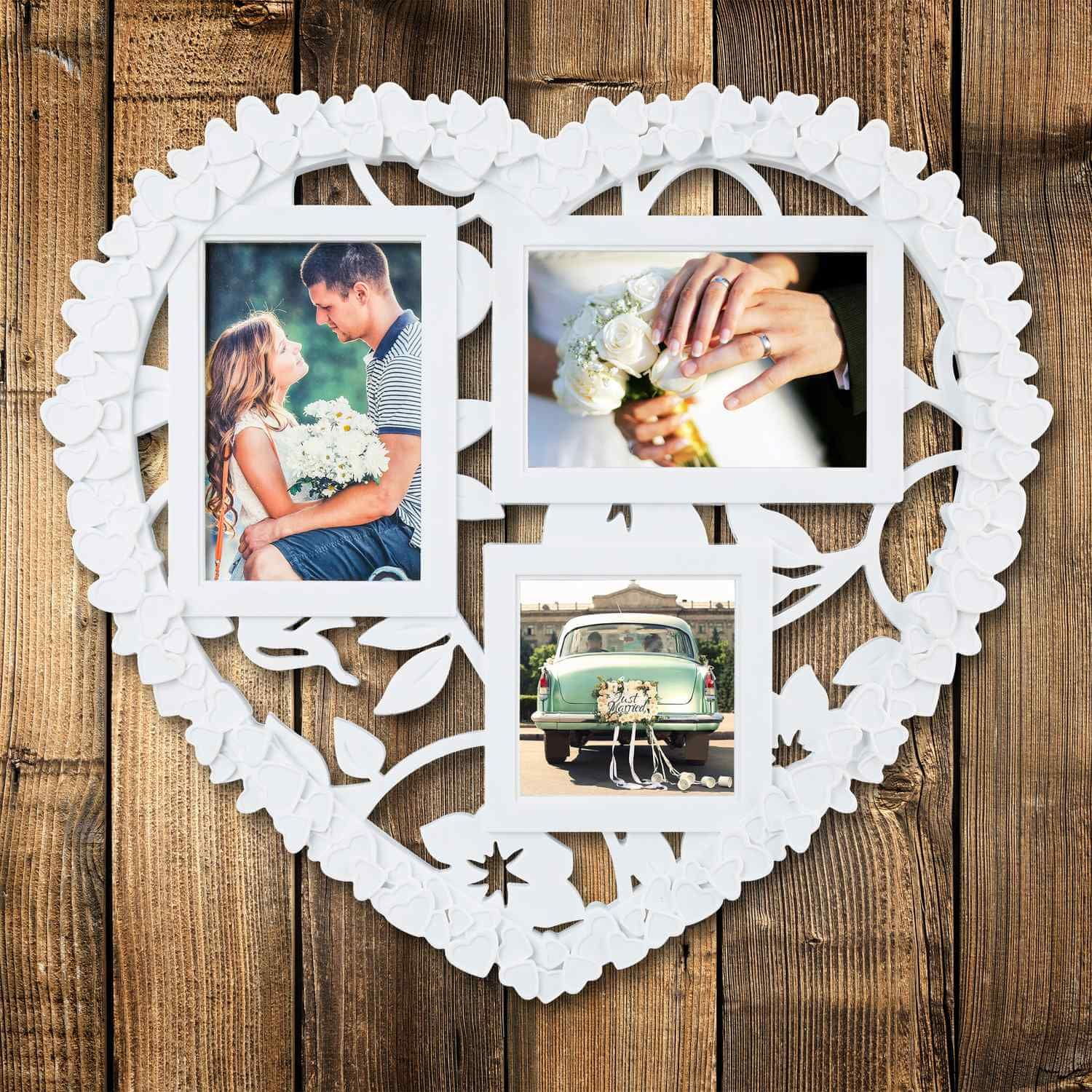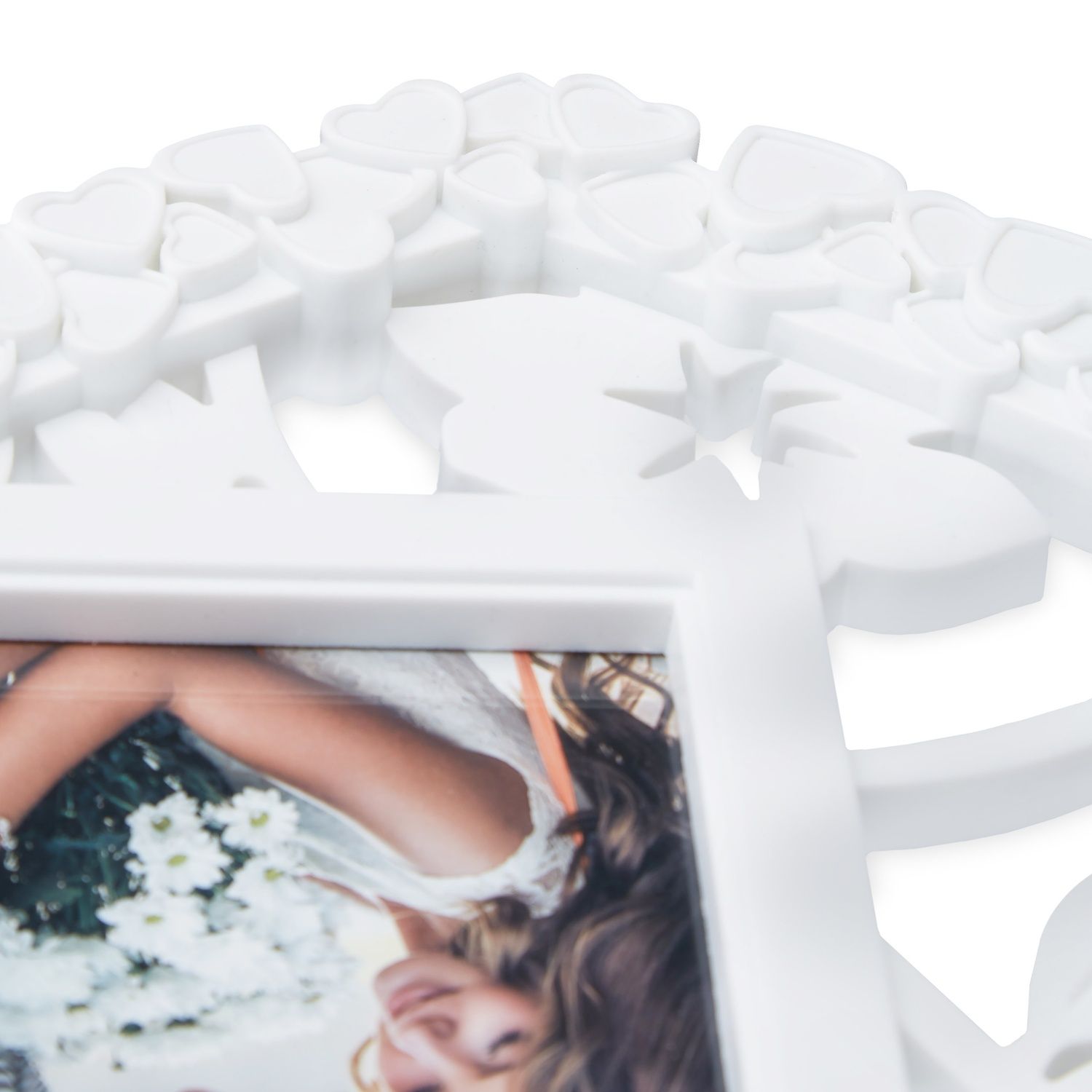 Kolažni okvir v obliki srca prikazuje cenjene spomine, kot nalašč za romantična darila. Idealen za poročne fotografije ali posebne trenutke, ta okvir doda eleganco vsakemu prostoru s svojo zapleteno zasnovo.
