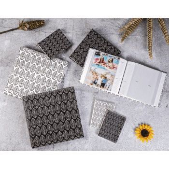 • za lepljenje fotografij – modna črno-bela zasnova z grafičnimi motivi – trde plošče iz laminiranega papirja – za 400 fotografij formata 10×15 cm – beli notranji listi, pergamentni papir – format …