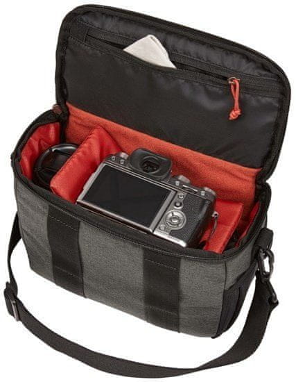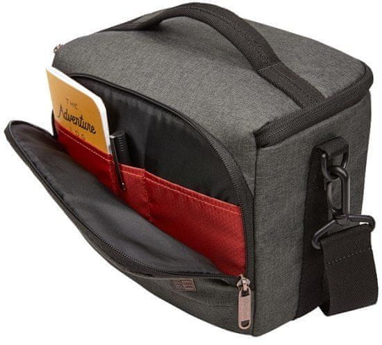 • ohišje kamere Case Logic ima sistemsko kamero ali DSLR kamero. Prostor za eno ali dve dodatni leči,