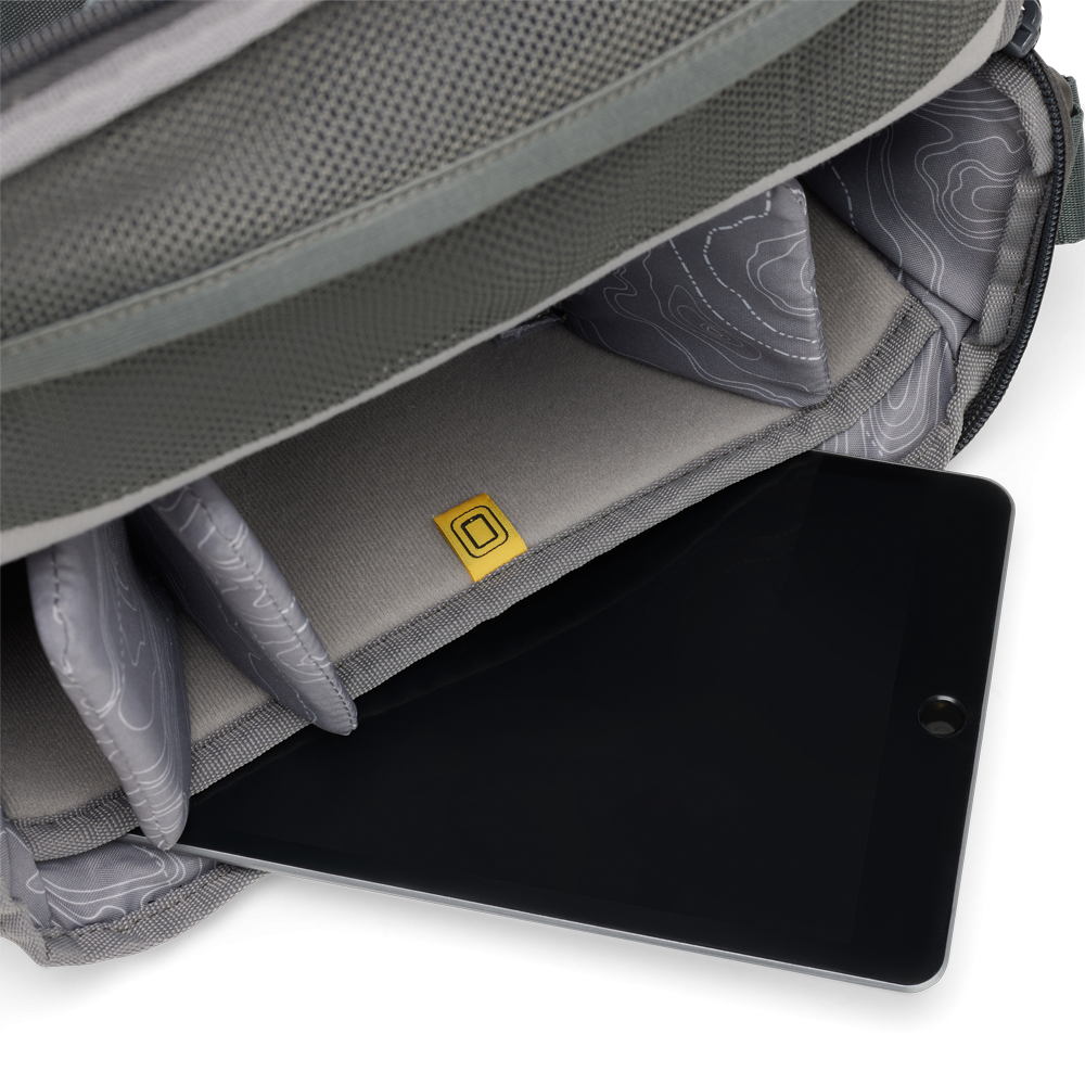 Ima notranji oblazinjen etui za tablični računalnik, da bodo vse vaše naprave na enem mestu med potovanjem ali na poti.