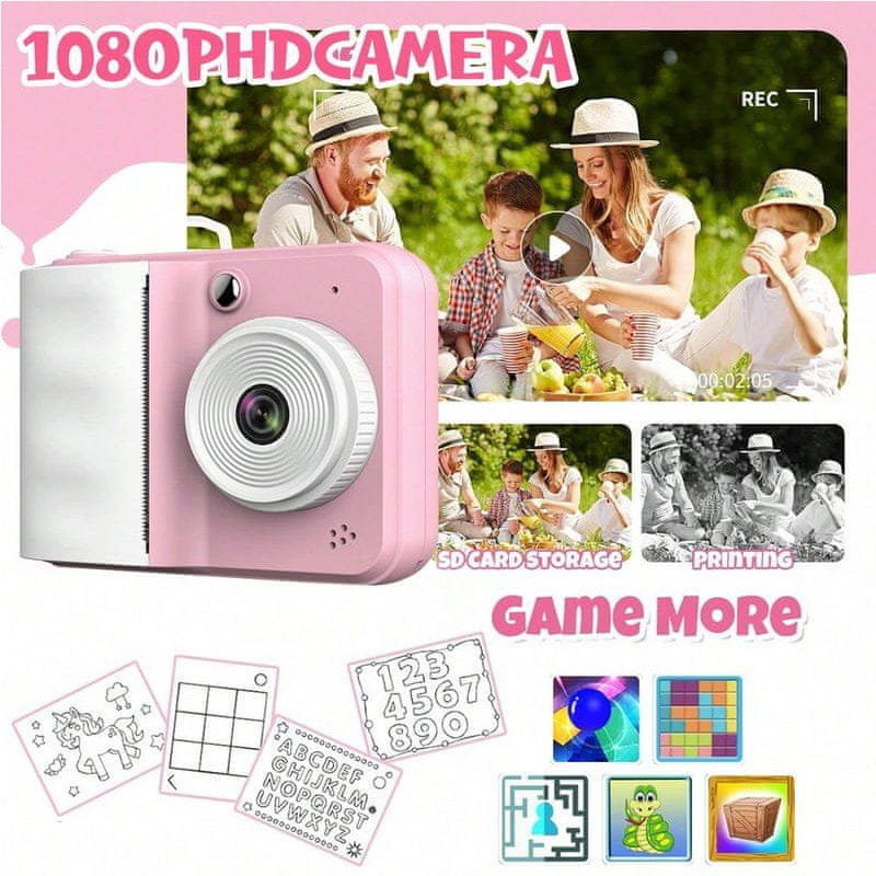 Otroška kamera za tiskanje fotografij je zasnovana posebej za otroke od 3. leta starosti in ponuja edinstven način odkrivanja sveta okoli sebe. Združuje klasično fotografijo s takojšnjim tiskanjem fotografij, kar otrokom omogoča, da takoj vidijo rezultat svojega dela in uživajo v lastnih stvaritvah. Ta naprava podpira ustvarjalno zabavo, razvija fino motoriko, domišljijo in vizualno zaznavanje, hkrati pa zagotavlja varno in enostavno izkušnjo uporabe, prilagojeno majhnim rokam.