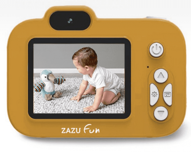 UZazu otroški fotoaparat s katerim lahko enostavno preklapljajte med sprednjo in zadnjo kamero za različne perspektive. Fotografije lahko prilagodite tudi s filtri in efekti. Prav tako lahko snemate videoposnetke.