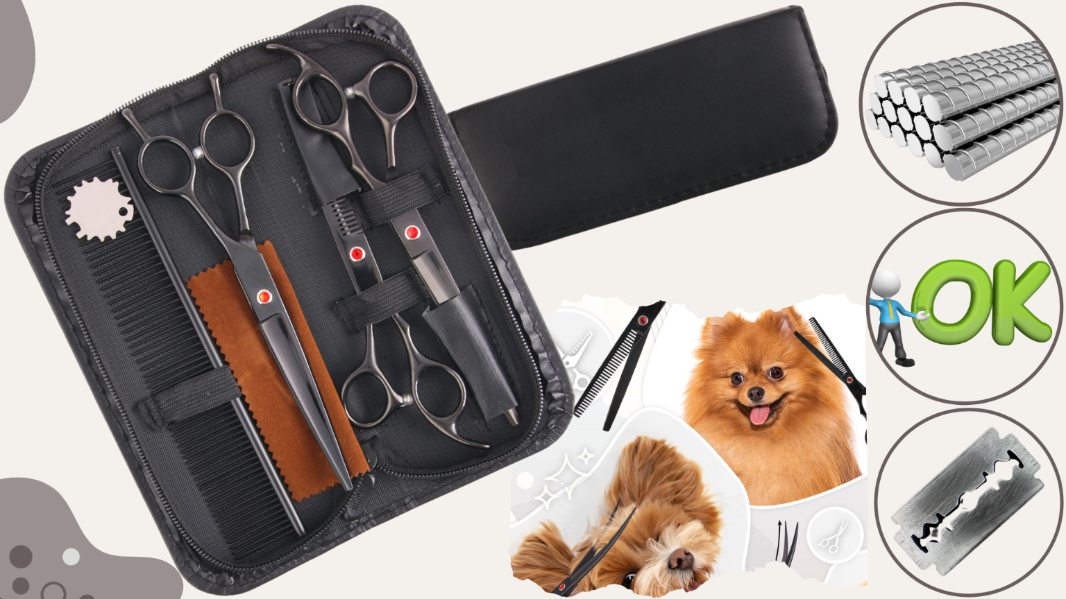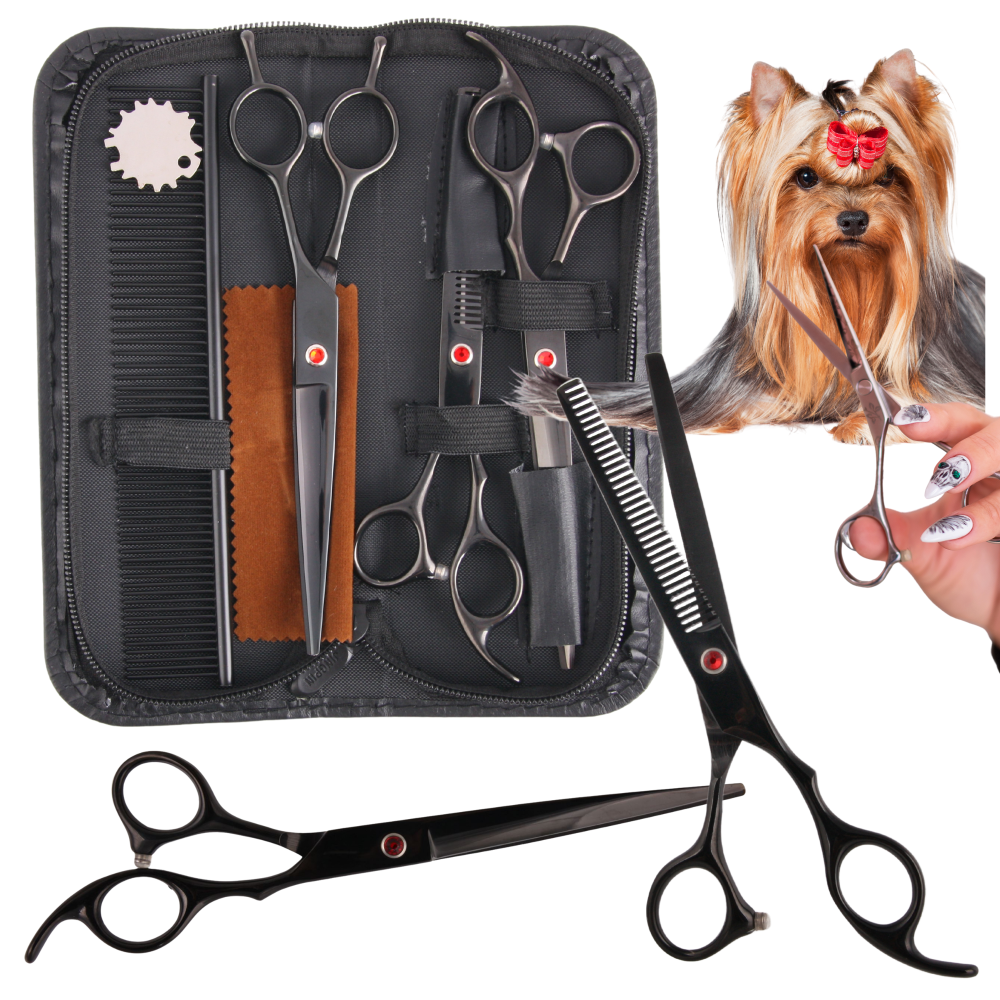 ✅ Komplet, ki ga sestavljajo 6,5-palčne enostranske škarje za redčenje, 2 para 7-palčnih škarij in glavnik. Zasnovan tako za profesionalne kot za začetnike.