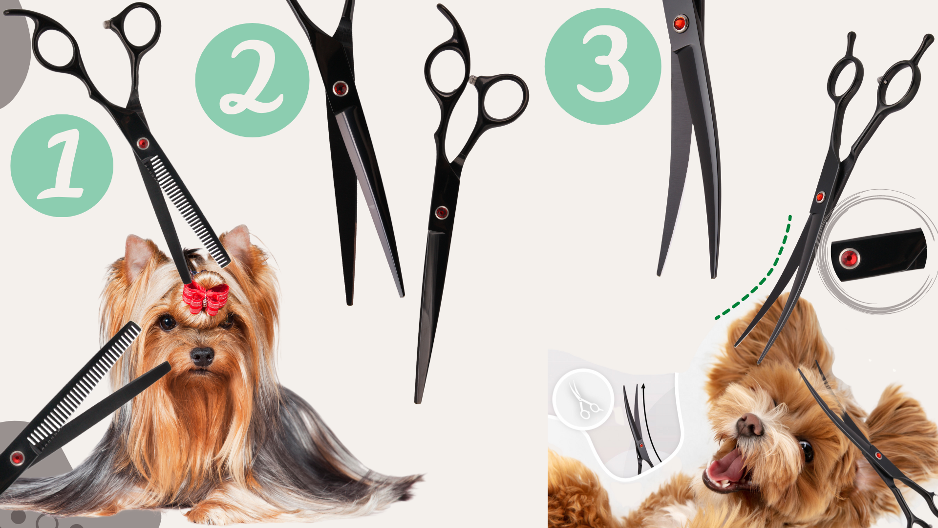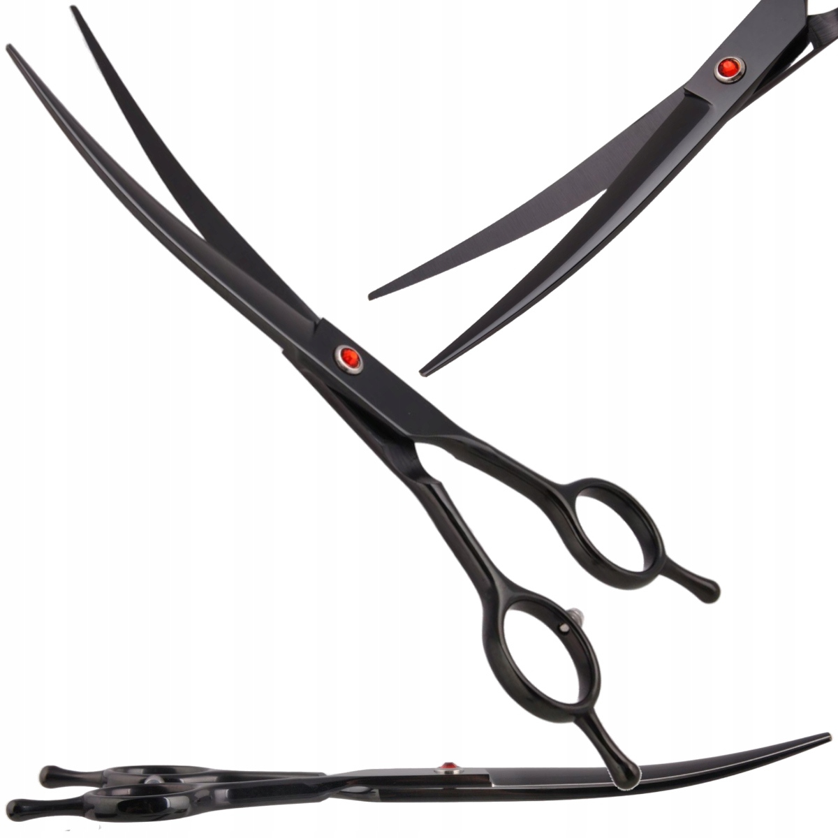 ✅Ukrivljene škarje – imajo dvojni vijak, ki ga je mogoče odviti. Zahvaljujoč temu vijaku lahko delate na obeh straneh. Idealne so za ustvarjanje zaobljenih površin na tačkah, na glavi itd. Zahvaljujoč velikemu kotu je ukrivljena oblika škarij odlična za azijske in korejske sloge, kjer so zaobljeni, natančni rezi tako zaželeni.
