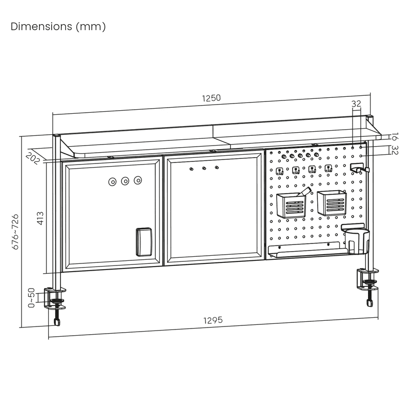 • Dimenzije: 1295 × 242 × 726 mm