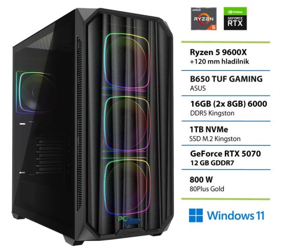 PCplus Gamer namizni računalnik, R5 9600X, 16GB, SSD1TB, RTX5070, W11H (148114)