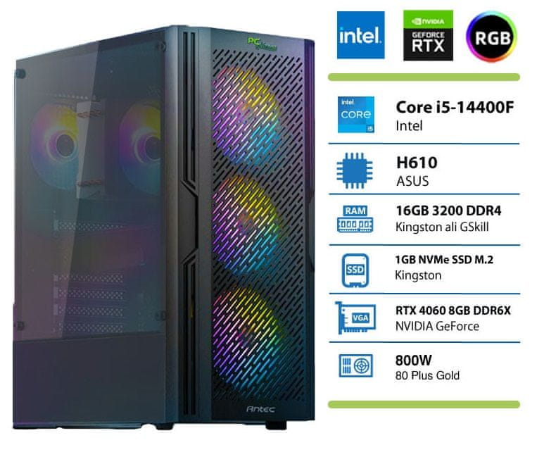 Poganja ga 10-jedrni procesor Intel® Core™ i5–14400F, napredna grafična kartica GeForce RTX 4060 pa bo poskrbela za brezhiben prikaz iger.