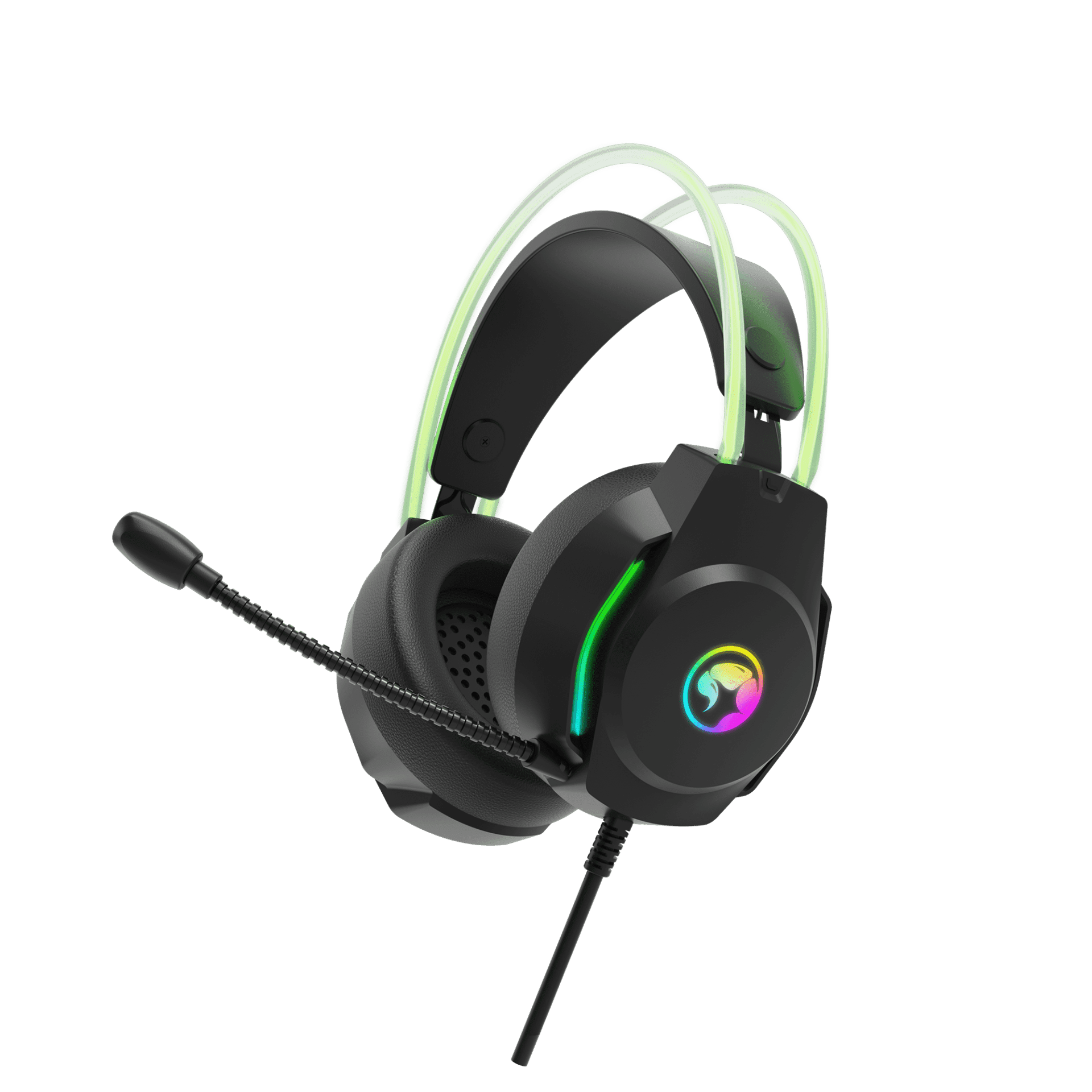 Slušalke MARVO H8620 so odlična izbira za igralce videoiger, ki iščejo visokokakovosten zvok in udobje med dolgimi igralnimi sejami. Visokokakovosten zvok, udoben dizajn in napredna RGB osvetlitev naredijo vsako igralno sejo nepozabno. Če iščete slušalke, ki ne le izgledajo dobro, temveč zagotavljajo tudi odličen zvok, potem so gaming slušalke MARVO H8620 prava izbira za vas. Te črne slušalke so opremljene z zmogljivimi zvočniki, ki vas lahko popolnoma potopijo v svet igre ter prinašajo kristalno čist zvok in natančne zvočne efekte. Poleg tega so slušalke zasnovane tako, da so udobne tudi med dolgimi igrami, zahvaljujoč mehkim ušesnim blazinicam in nastavljivemu naglavnemu traku.