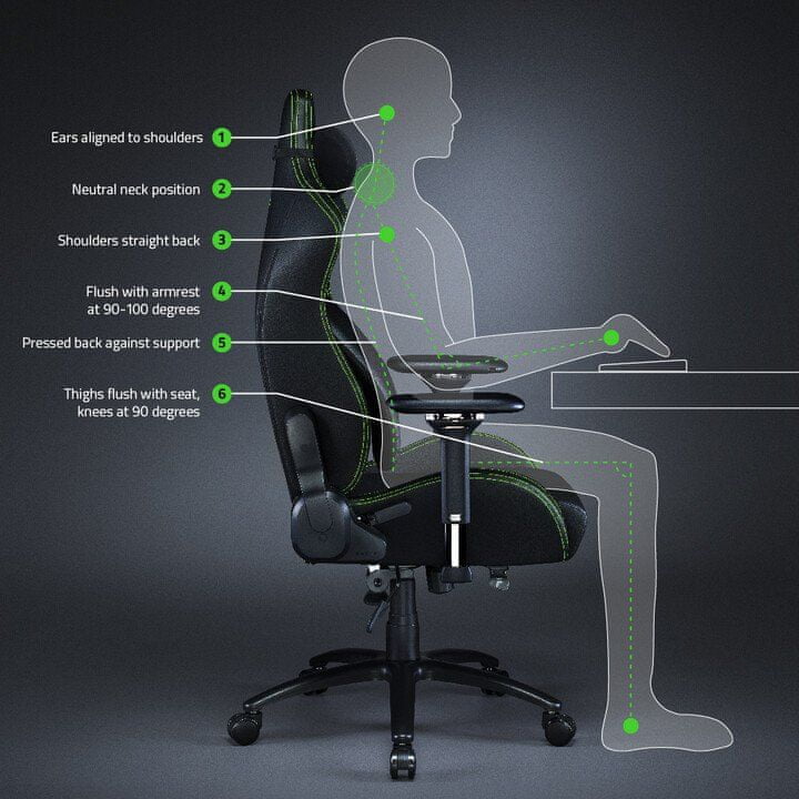 Igralni stol Razer Iskur, 4D naslon za roke, z jeklom ojačano ogrodje, zaobljeni robovi, blazina za glavo, kakovostni koleščki velikosti 6 cm. Celoten opis