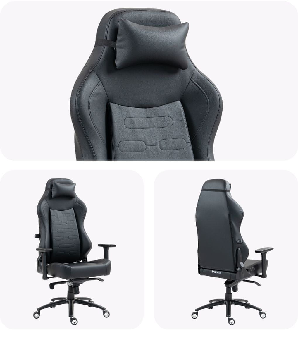 Uvi Chair gamerski stol Elegant črne barve je idealen za uporabo v pisarniškem okolju. Odlikujejo ga preprosta in elegantna oblika, močan kovinski stabilizator s petimi kraki, ki preprečuje nagibanje stola, mehka PU pena, ki je prevlečena s kakovostnim usnjem, in odstranljiva blazina za predel vratu.