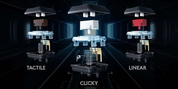 Vgrajena napredna mehanska stikala bodo zagotovila brezhibno odzivnost za veliko prednost pri igranju vaših najljubših iger. Stikala GL Tactile odlikuje taktilen in tišji odziv. Tipkovnica ima US lokalizacijo s SLO gravuro.