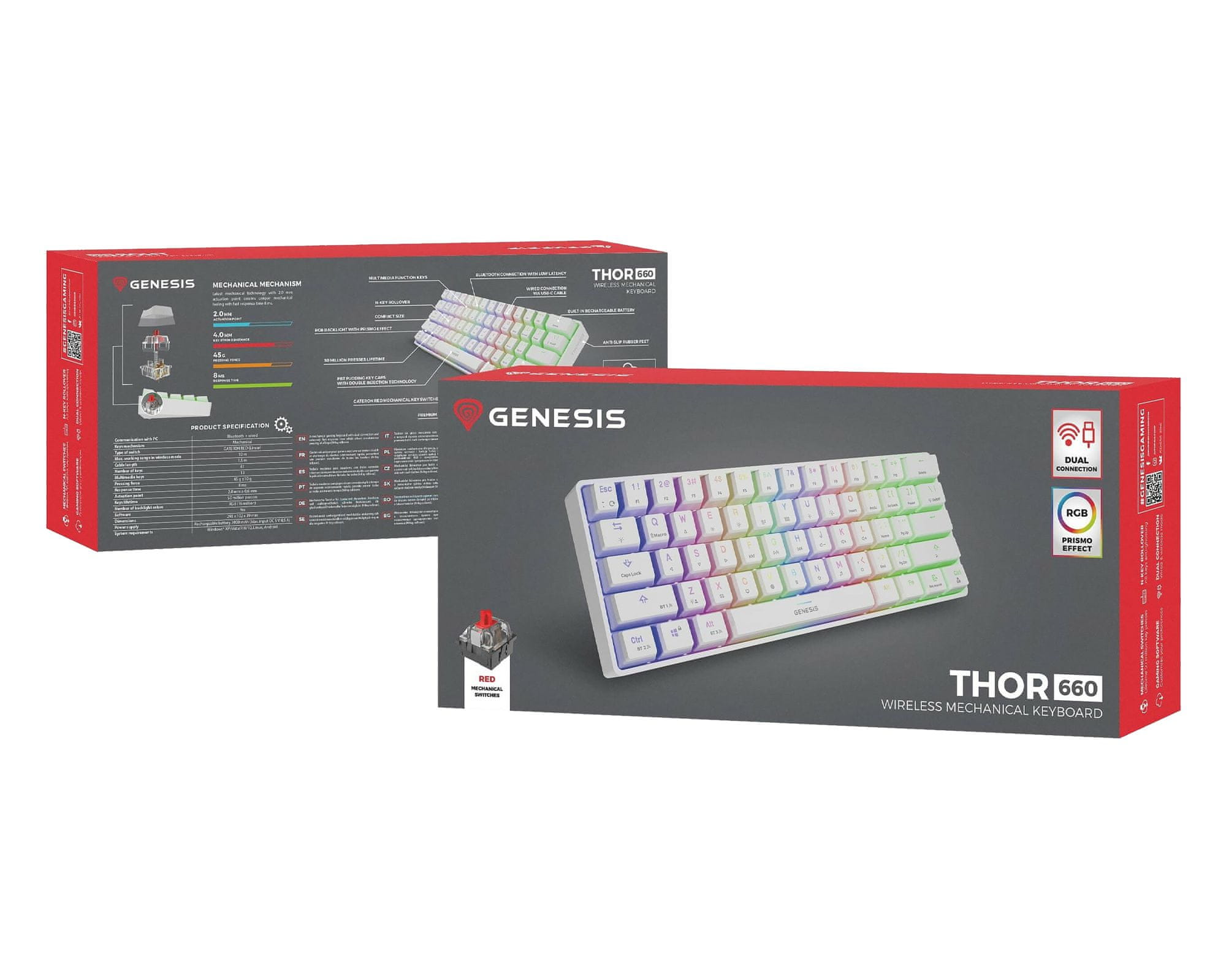 Genesis Thor 660 gaming tipkovnica, mehanska, USB-C, Bluetooth, RGB LED, bela