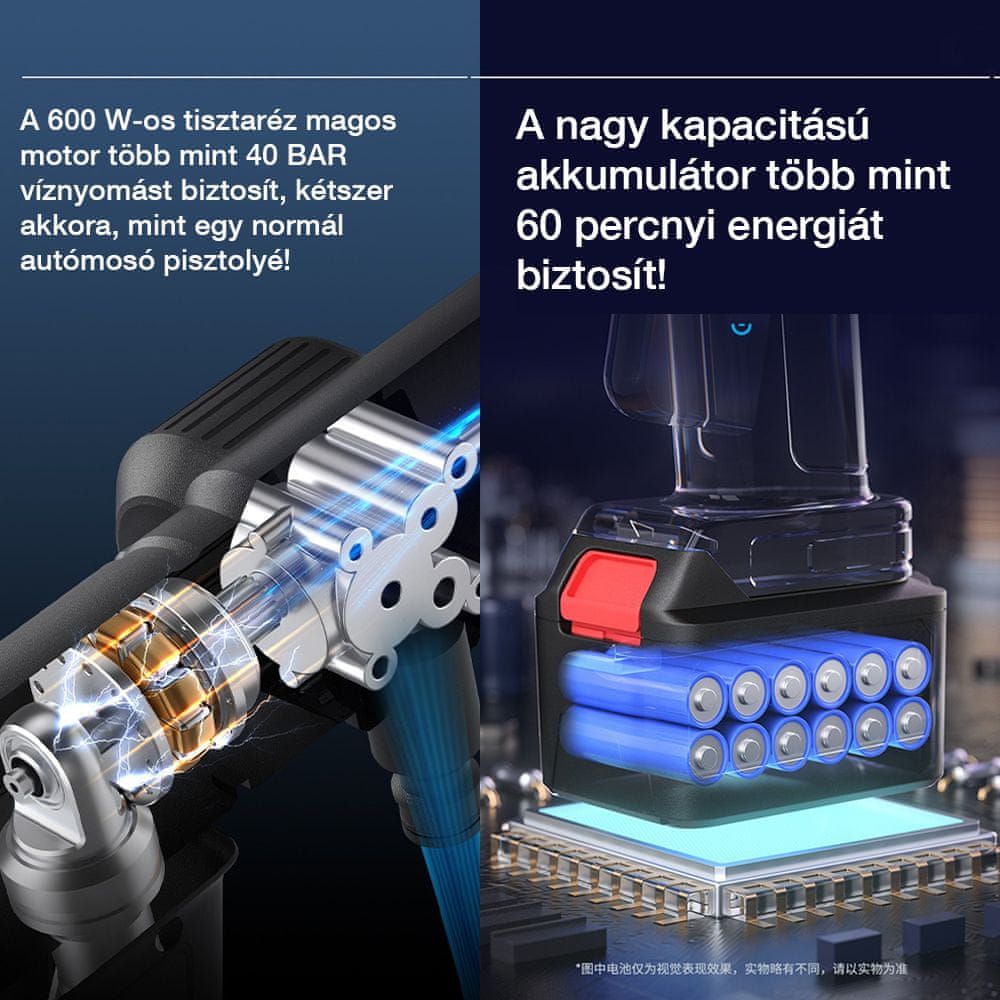 🚗【21V visokozmogljiva baterija】: Prenosni visokotlačni čistilnik je opremljen z 21V 30000mAh visokozmogljivo baterijo, ki lahko neprekinjeno deluje približno 45 minut (pred uporabo jo je treba napolniti). Akumulatorski visokotlačni čistilniki sprostijo kable, zaradi česar jih je lažje prenašati.