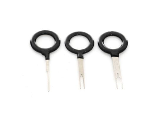 3-delni komplet, zasnovan za odklop konektorjev, zlasti v električnih inštalacijah v avtomobilih. Z uporabo kompleta lahko enostavno in hitro odpravite pomanjkljivosti v povezavah, ne da bi pri tem tvegali poškodbe. Primerno za ploščate, viličaste in okrogle konektorje. Popoln komplet za najpogosteje dostopne konektorje.