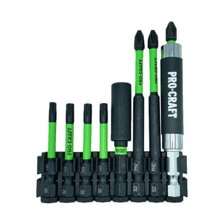 41-delni komplet udarnih nastavkov Procraft IBS-41 25 kosov 25 mm nastavkov: Phillips: PH1×1, PH2×2, PH3×1, Pozi: PZ1×1, PZ2×1, PZ3×1, Torx: T10×2, T15×3, T20×5, T25×4, T27×1, T30×1, T20 Security,. Celoten opis