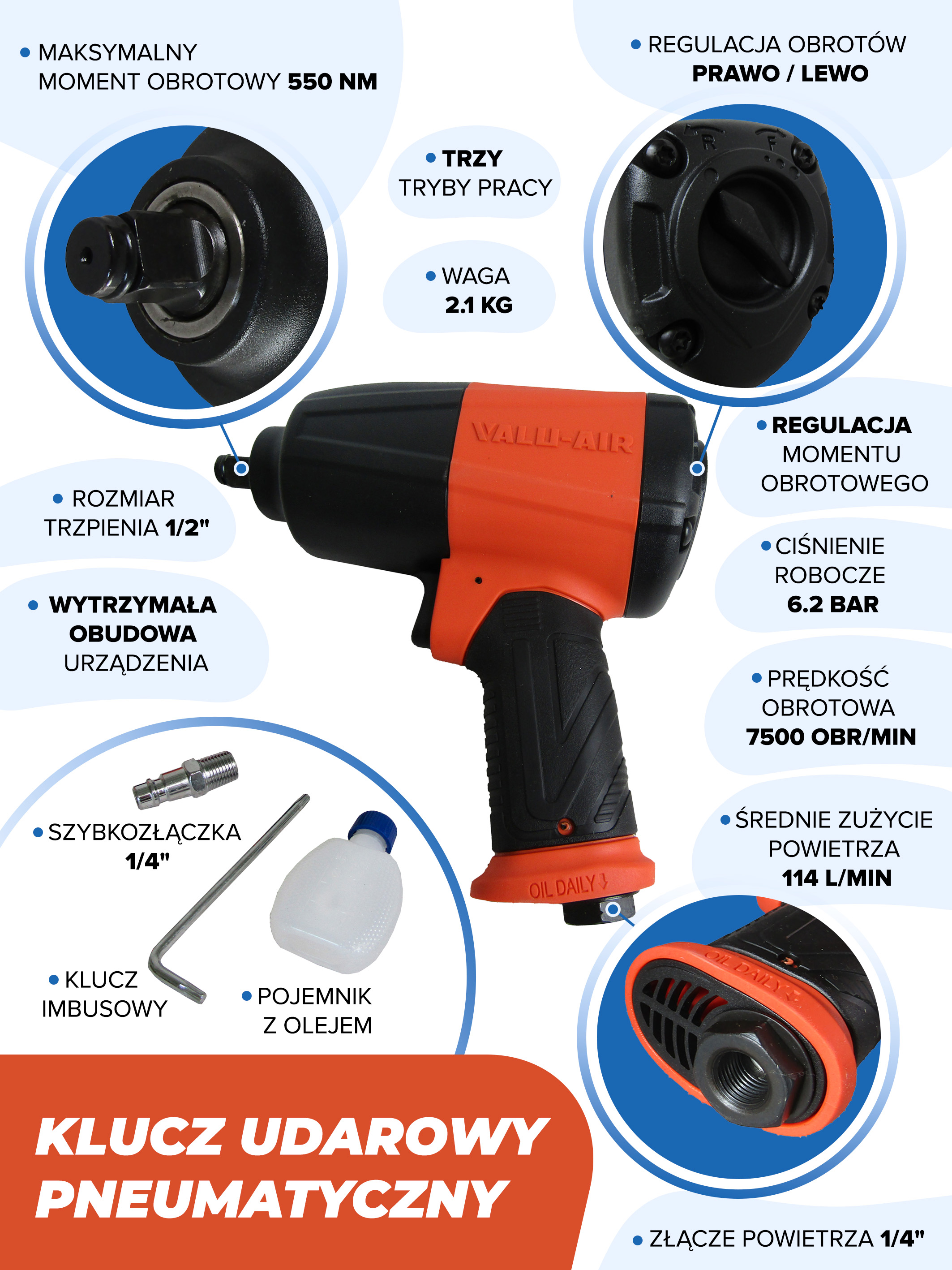 PNEVMATSKI KLJUČ 550Nm 1/2" Celoten opis