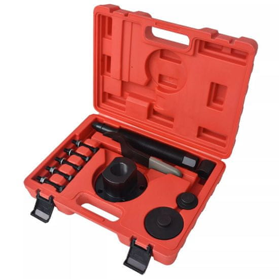 Komplet orodja je izdelan iz močnega ogljikovega jekla, kar zagotavlja vzdržljivost in trajnost. Vsi deli so shranjeni v prilagojenem kovčku za enostavno shranjevanje in prenašanje.