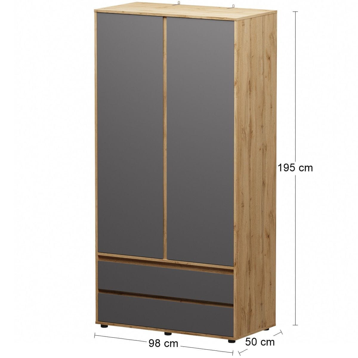 nabbi Dvovratna garderobna omara s predali Norman 2D/2DR - sivi grafit / wotan hrast