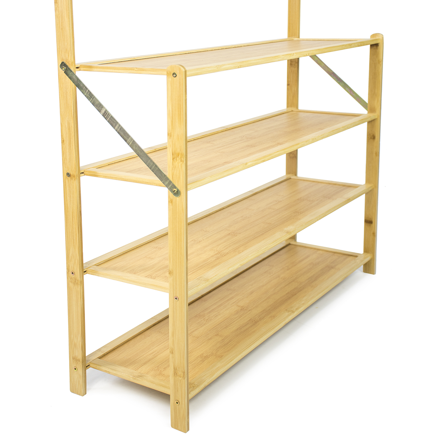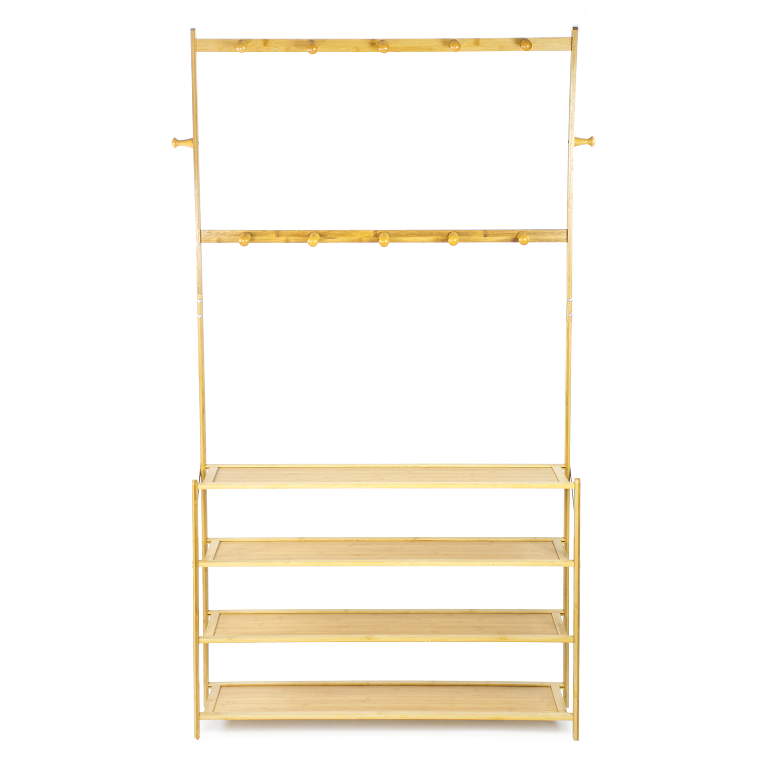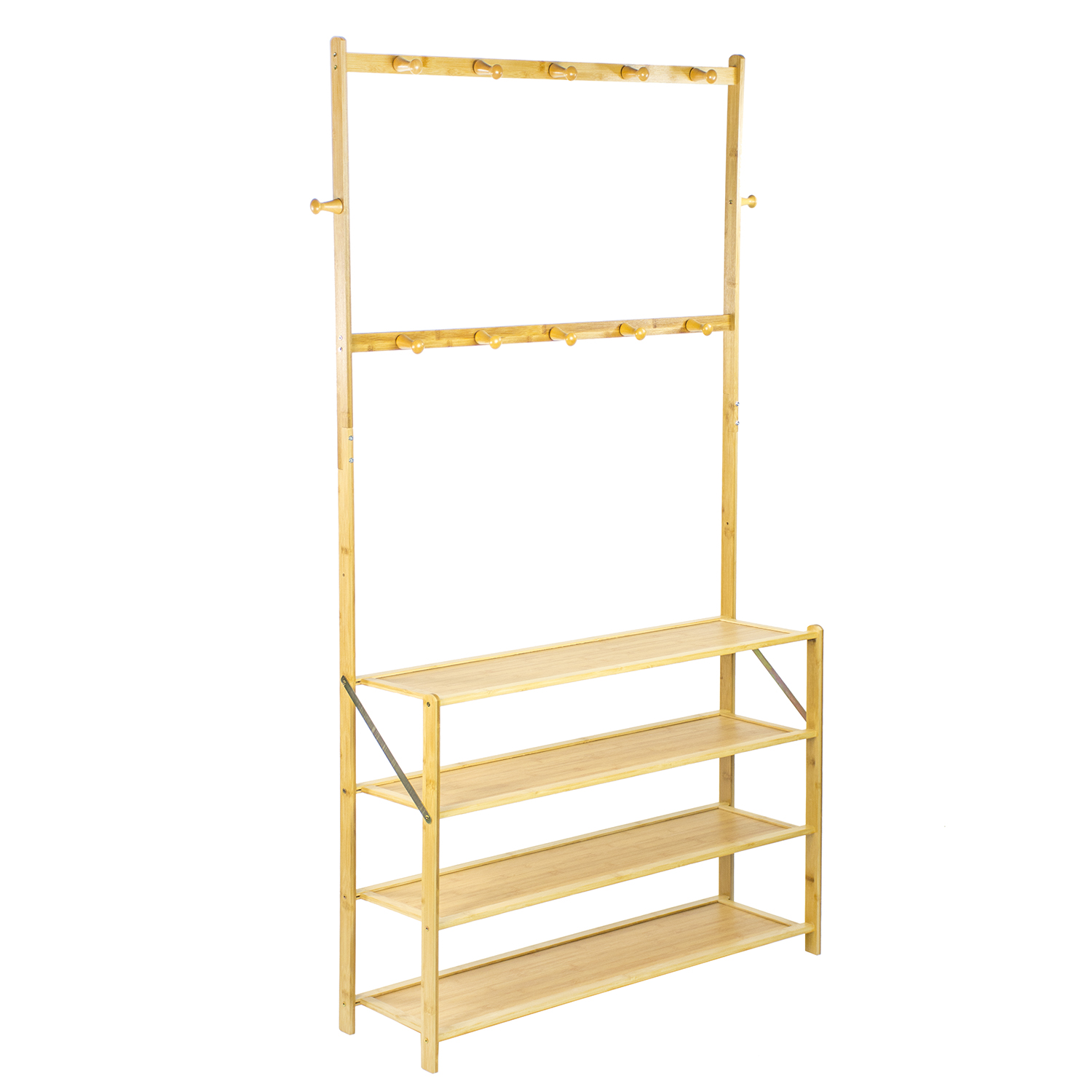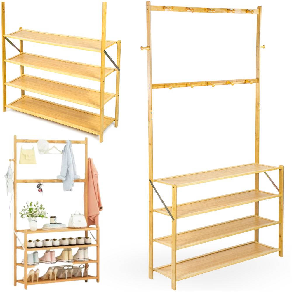 shumee Bambusov obešalnik, stojalo za čevlje, polica, stojalo za predsobo, 4 police, kavlji, obutev